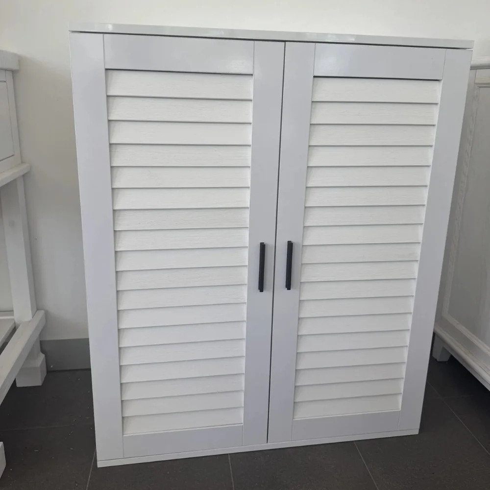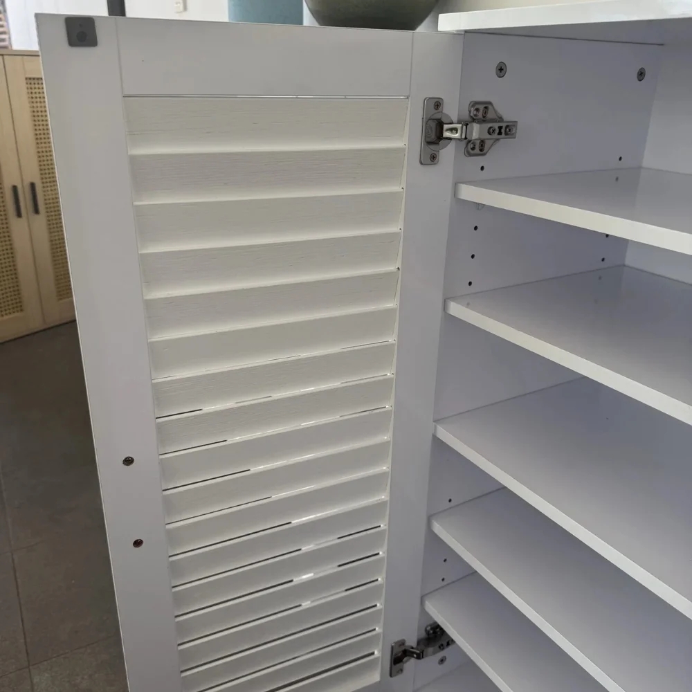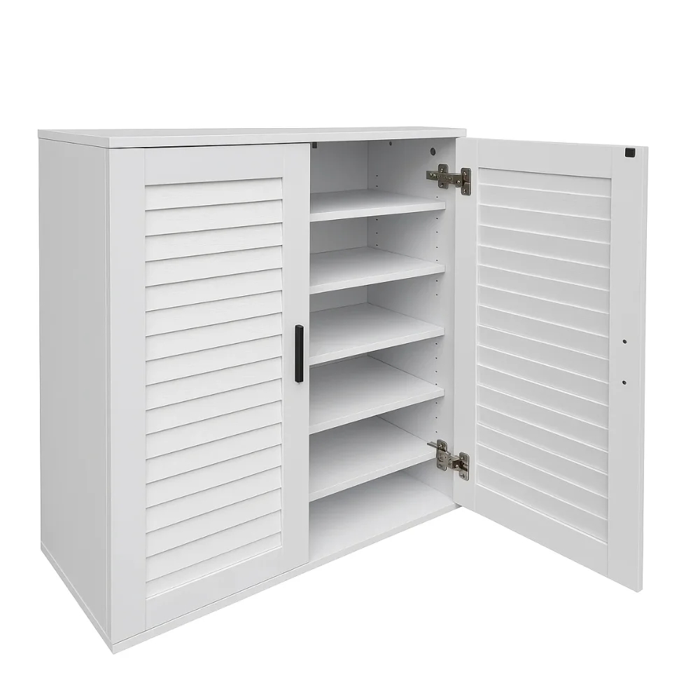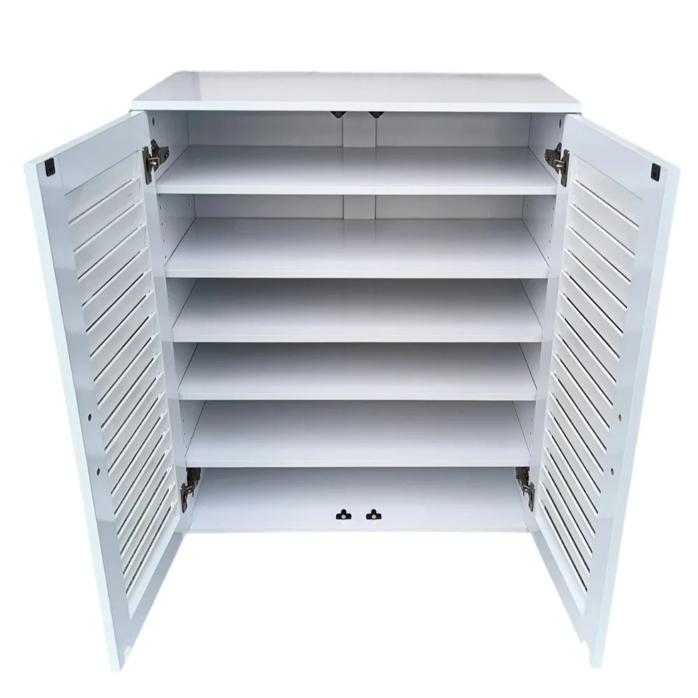 • Stylish Louvered Doors: The louvered design adds a timeless look to the cabinet while providing ventilation, keeping your footwear well-aired.