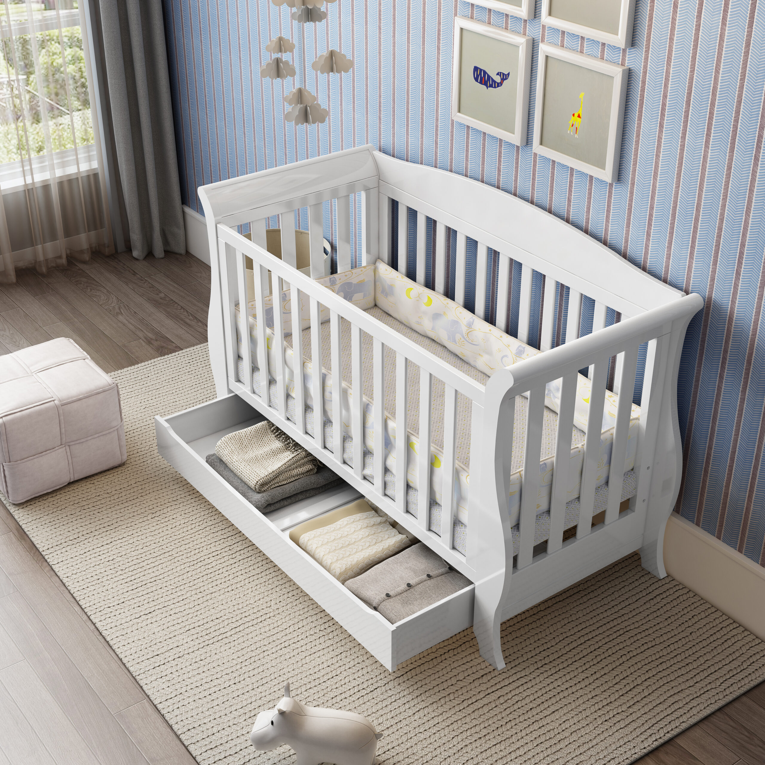 - comes with an integrated under-cot drawer, providing convenient extra storage