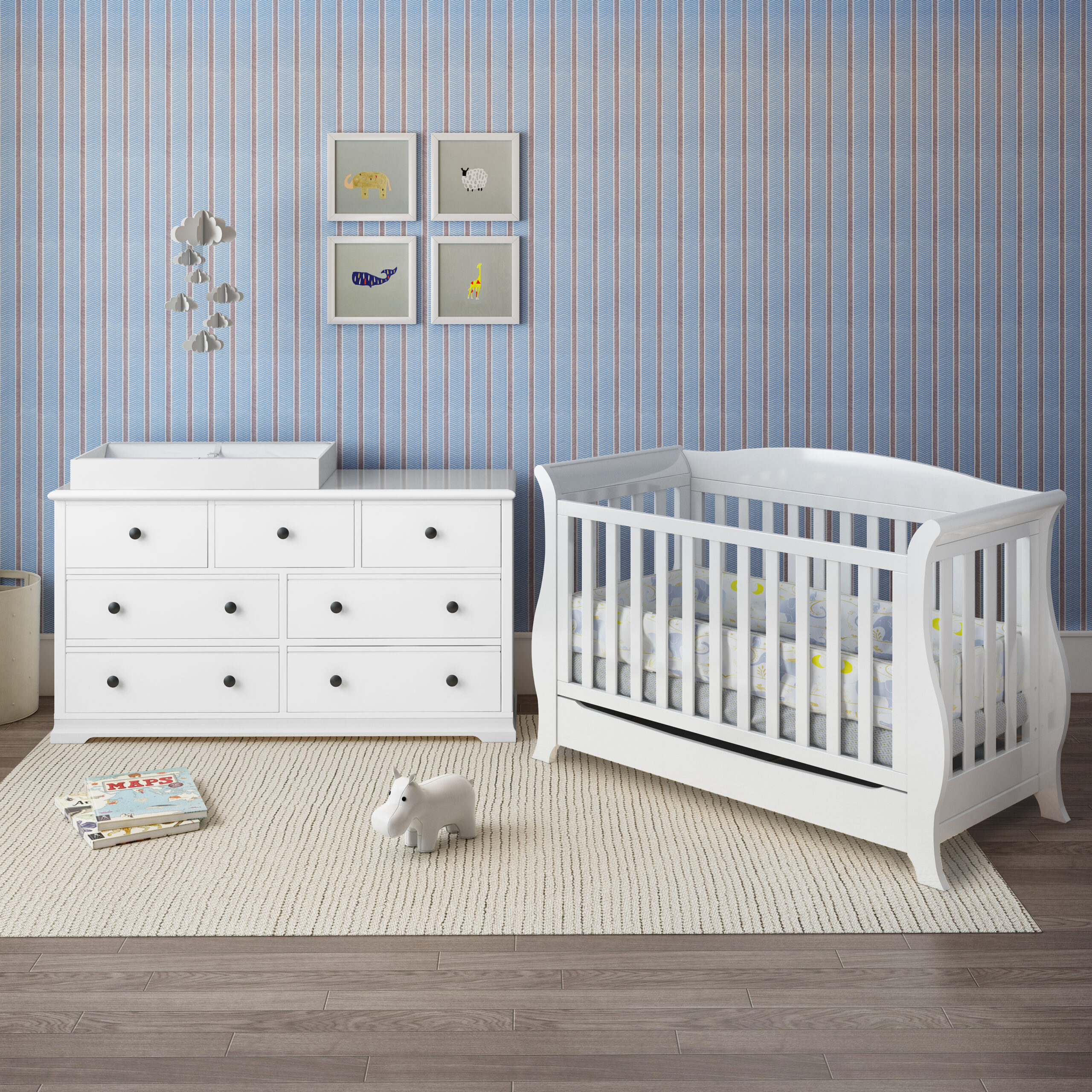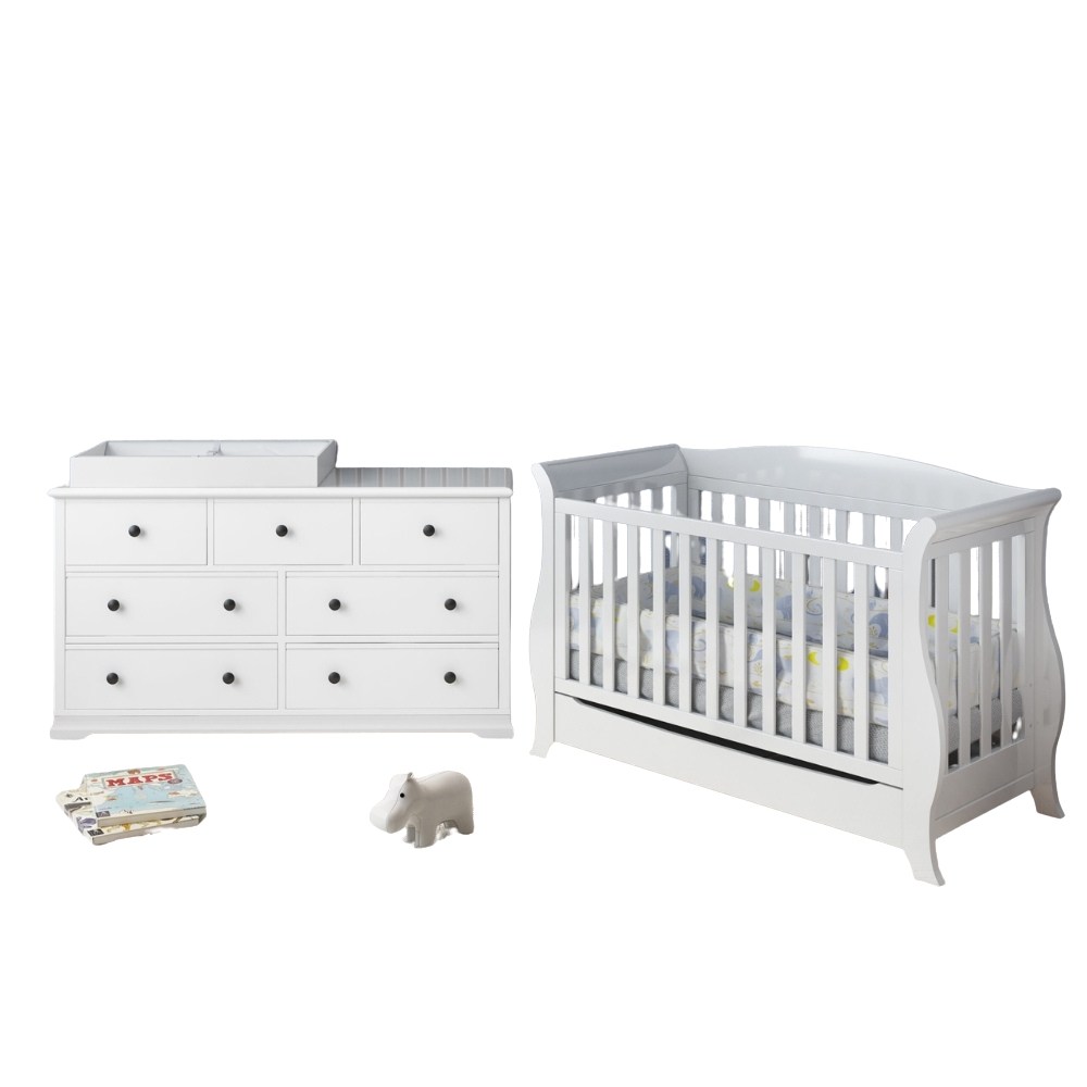 This package includes Andy baby cot,Cardinia change table, baby cot inner spring mattress and change table top and pad.