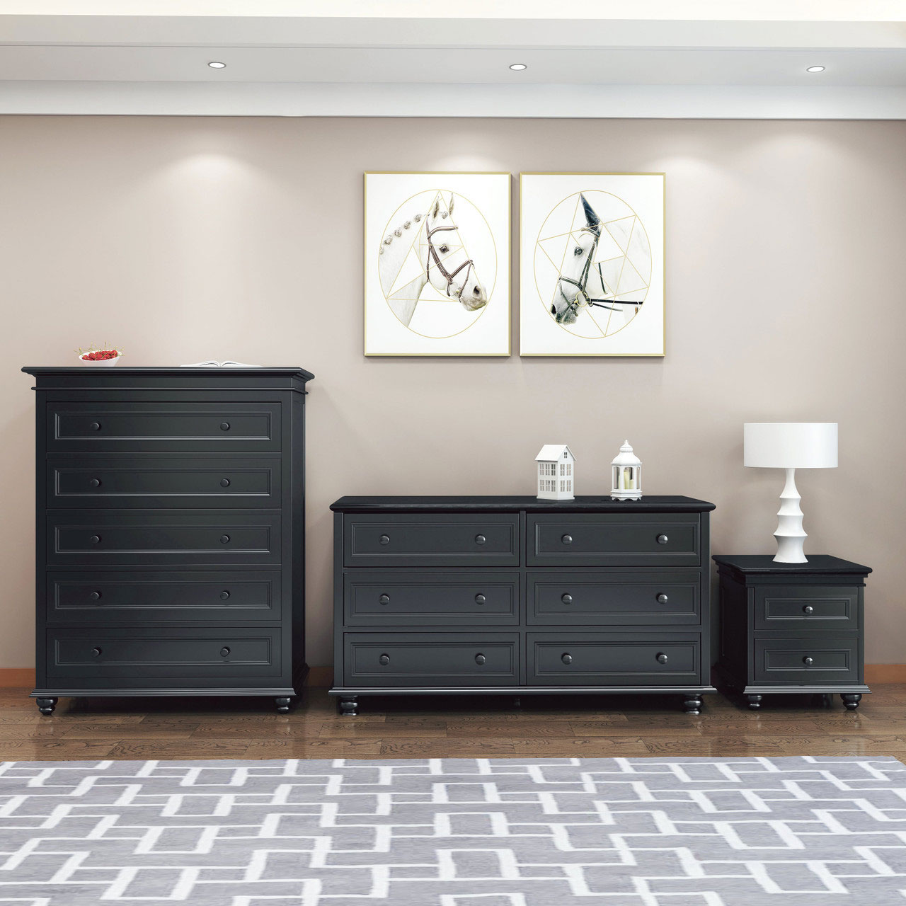 Black never goes out of fashion and can suit a wide range of interior decor styles. This is incredibly versatile and the Beata bedside table offers chic elegance with classic metal knobs and bevelled edges. It has 2 drawers for storage and is made from sturdy New Zealand pine. It has a 1 year manufacturer warranty for added peace of mind.