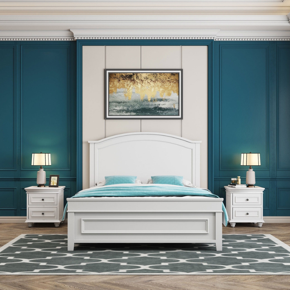 The Beata bedhead has a classic American country style and a neutral matte white finish that will pair with most decor. You can order in king or queen size. The headboard is 136cm high and is made from solid oak wood.