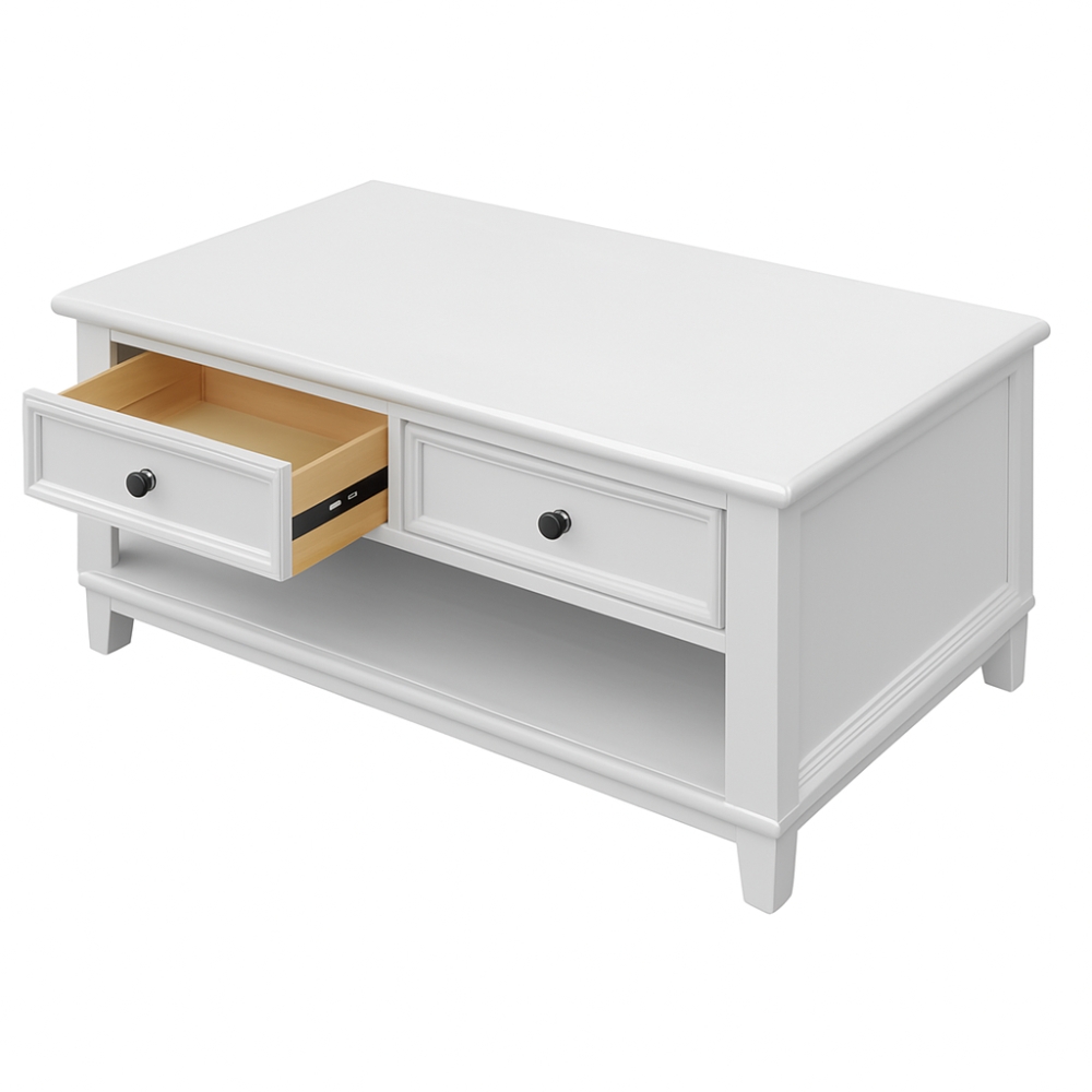 Hampton Ash Wood Coffee Table in White Finish JS804
