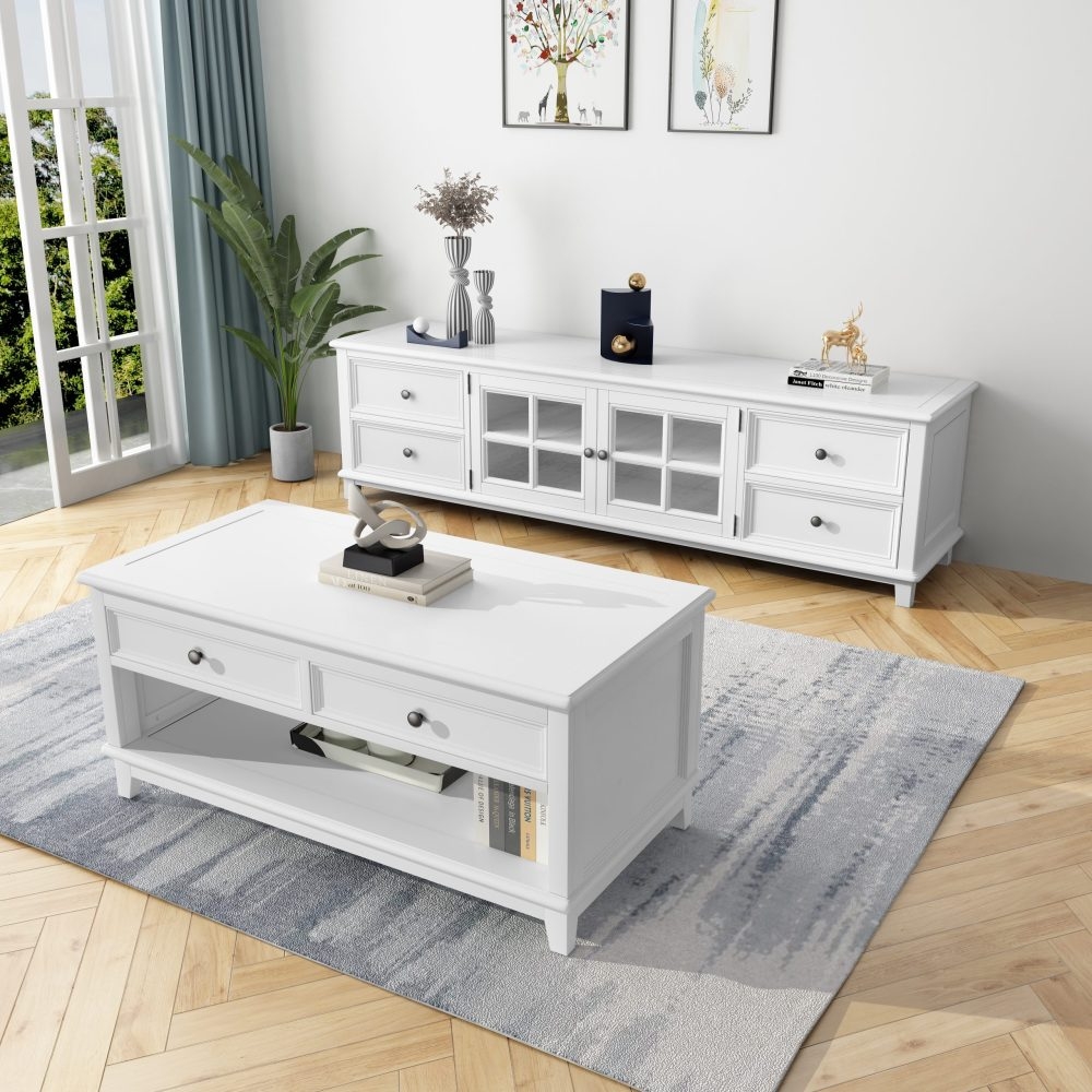 - The coffee table provides flexibility in both function and appearance.