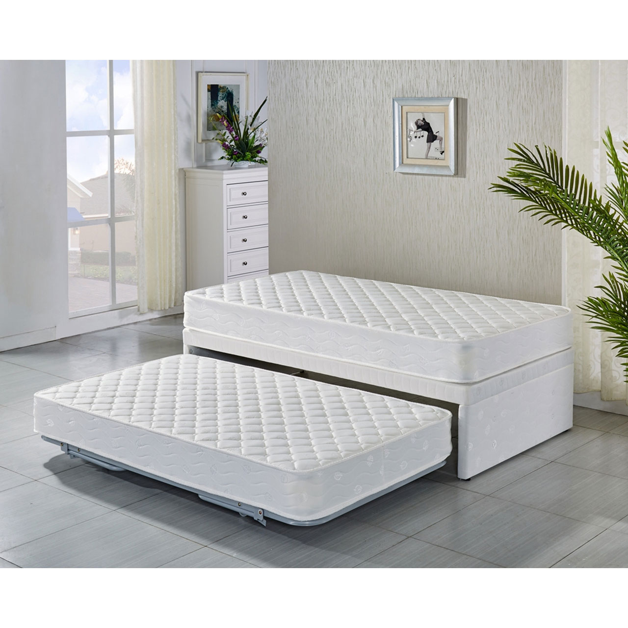 King Single Base with Trundle Bed and 2 Mattresses ZH907