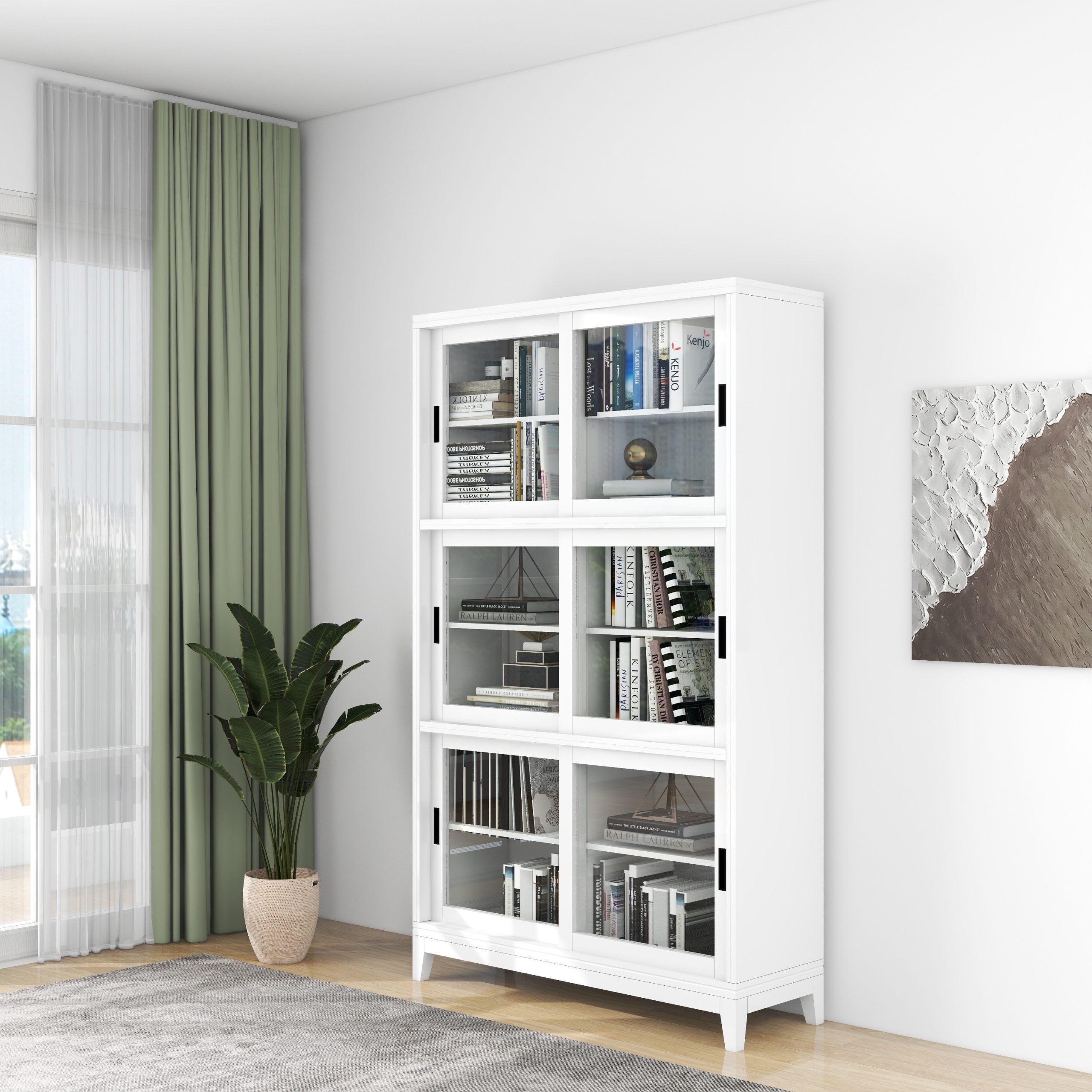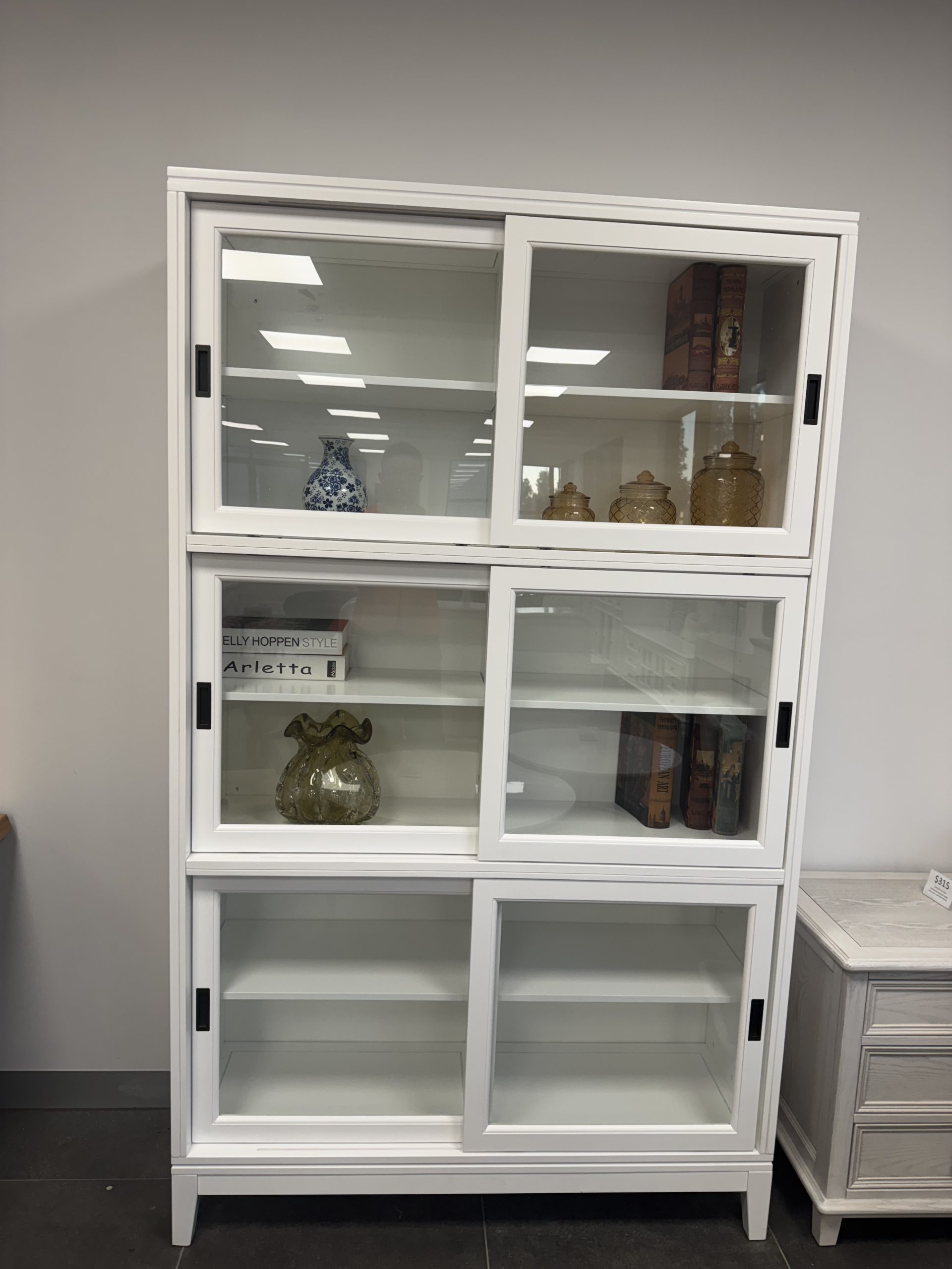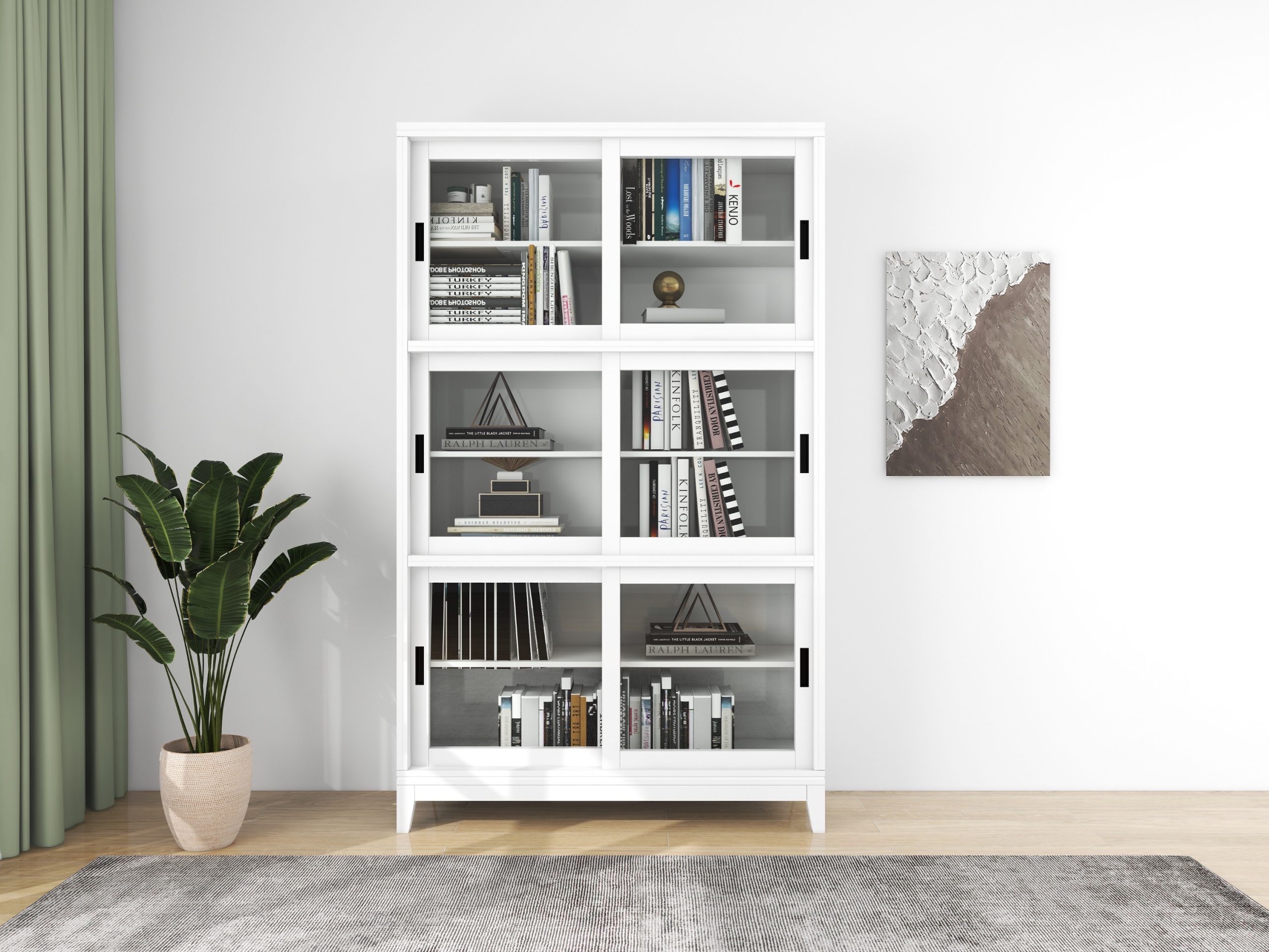 The bookcase is designed with three spacious sections, each enclosed by sliding glass doors that provide a clear view of your cherished items while keeping them dust-free. The glass doors glide smoothly, ensuring easy access to your belongings. Inside, the shelves are thoughtfully arranged to accommodate items of varying sizes—whether you’re showcasing a collection of novels, magazines, or decorative pieces like globes, model ships, or framed photos.