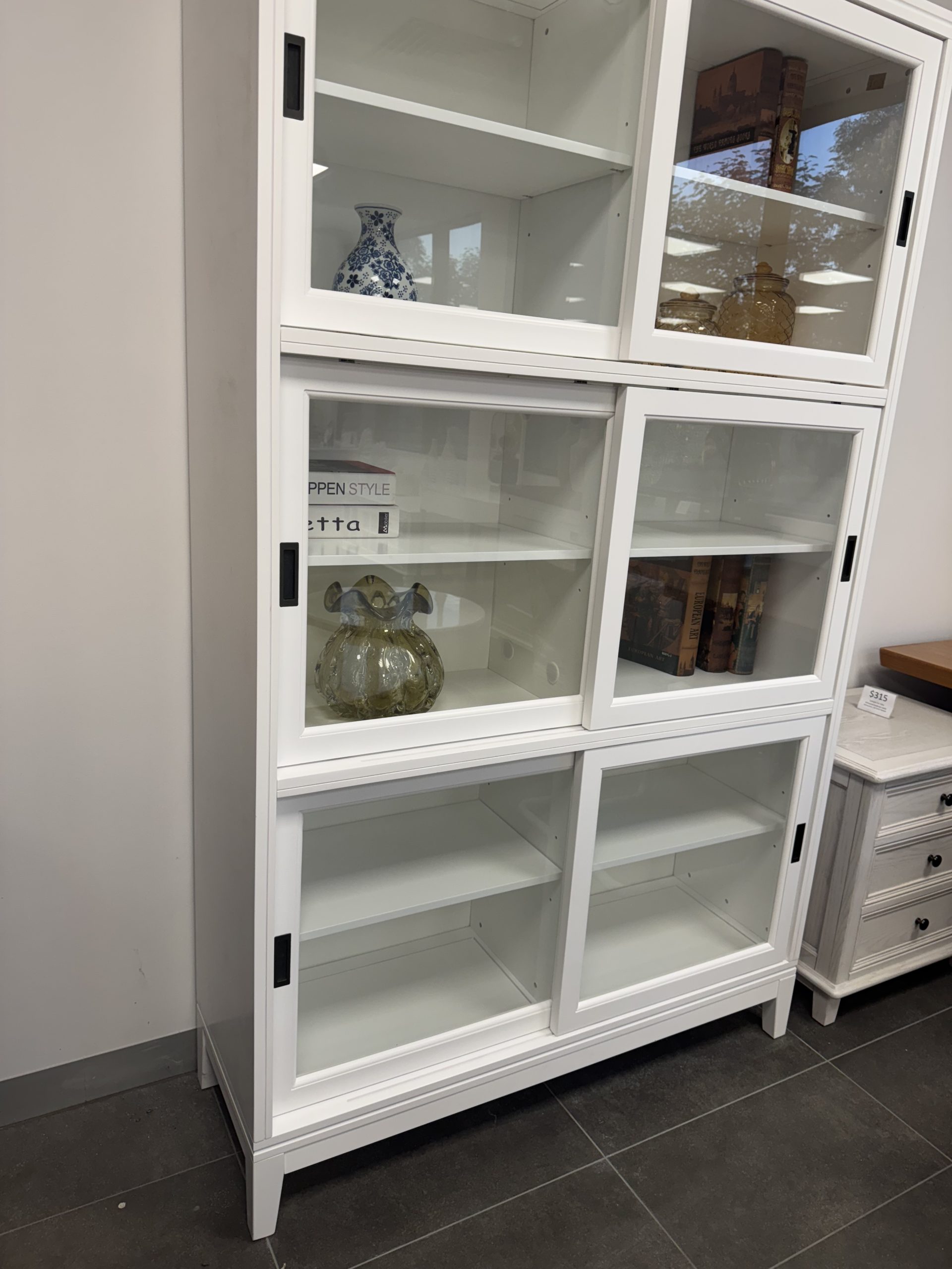 - Design: Three-tiered display with sliding glass doors for a modern, open look
