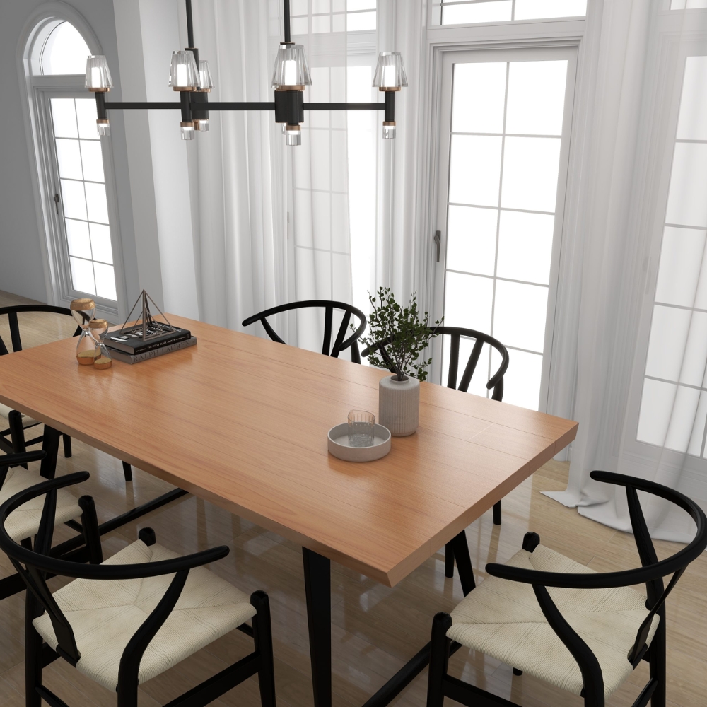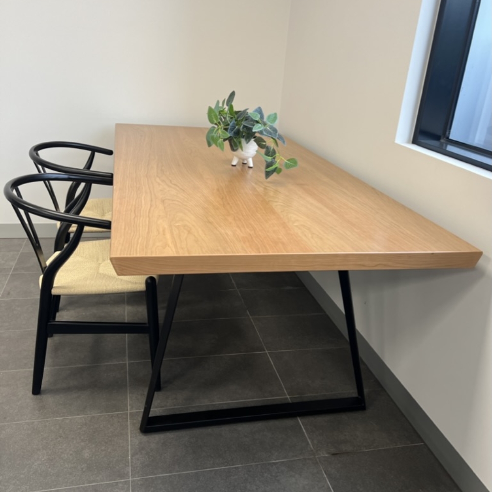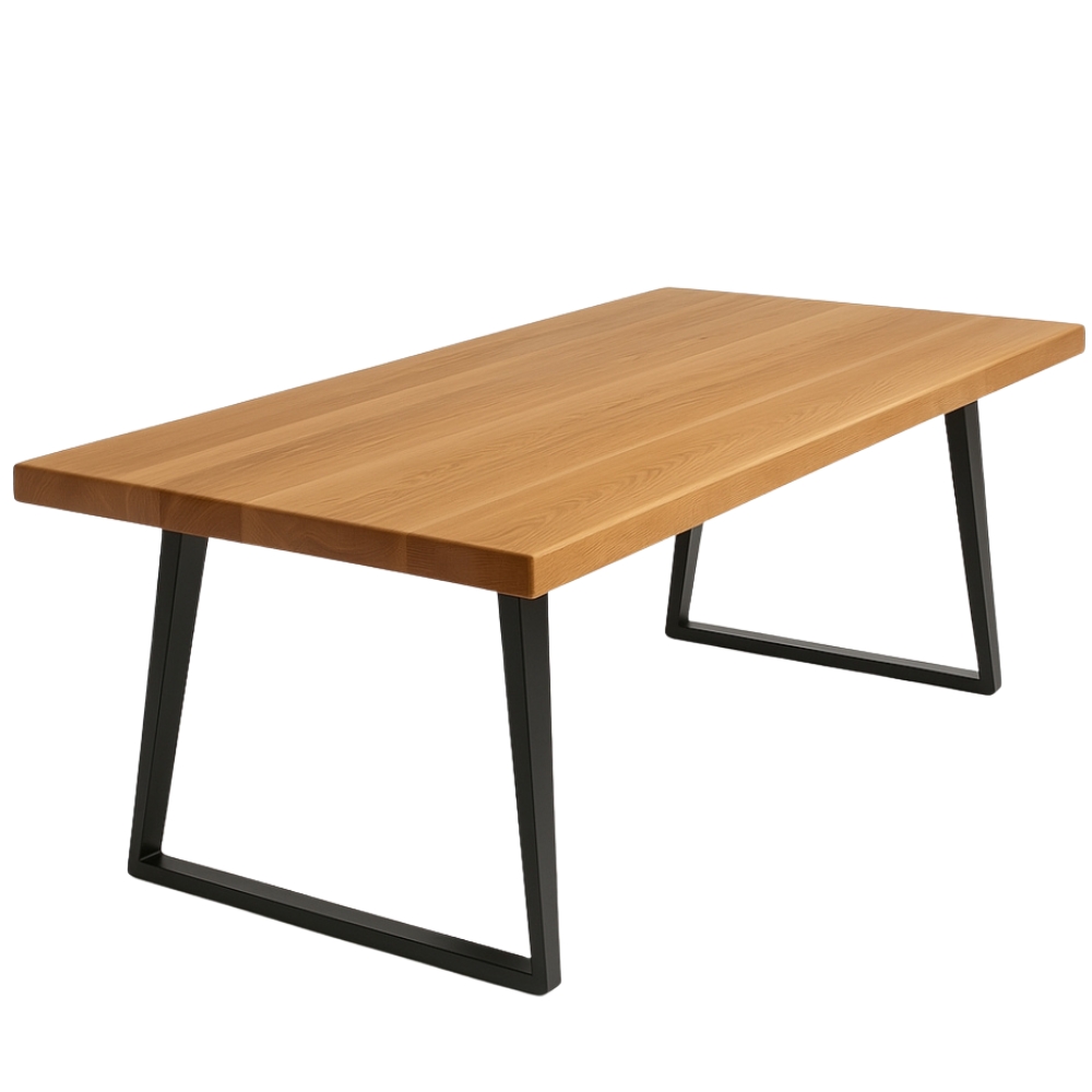 A timeless blend of form and function, this solid cherry wood table features a bold silhouette with a 6cm thick beveled-edge top and black angled metal legs. At 200cm long and 100cm wide, it offers a generous surface for both dining and working. Whether placed in a dining room or home office, this table brings natural warmth and modern strength to any space.
